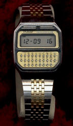 For example, calculator watches. It seemed like a really good idea at the time. The electronic guts required to run a calculator had shrunk radically due to advances in chip technology. Calculator watches had already been around for four or five years when this 1979 Pulsar came out, but this one seems particularly crazy.